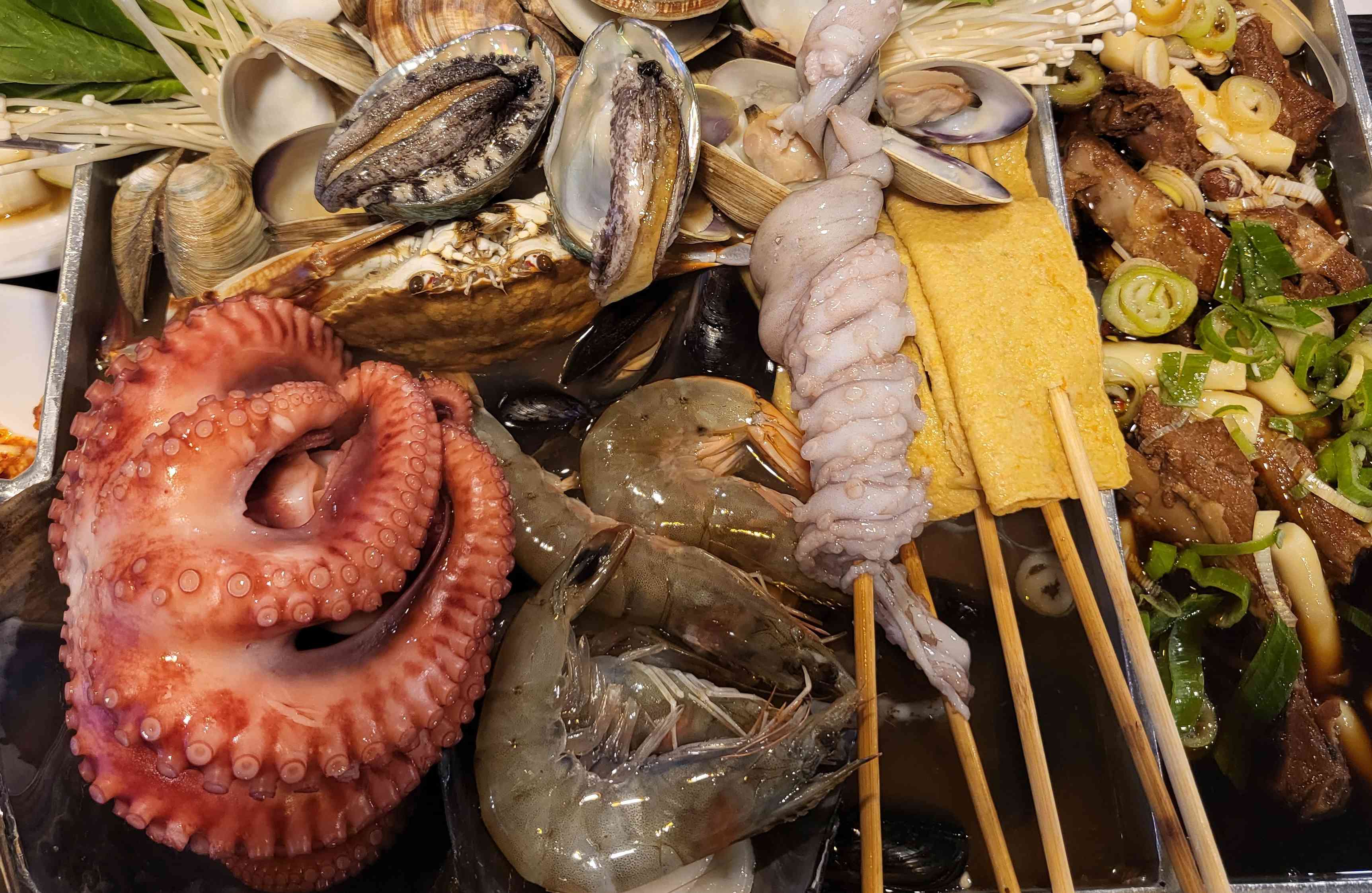 신논현역 맛집 베스트10 다섯번째 추천집 김선생조개찜은 신선한 해산물과 매콤달콤한 등갈비찜의 조합을 맛볼 수 있는 곳입니다. 신선한 해산물들과 문어와 낙지등은 쫄깃쫄깃한 맛을 선사하고 떡까지 들어있는 등갈비찜의 매콤달콤한 맛과 조화롭게 드셔보실 수 있습니다. 조개와 갈비찜 소짜 기준으로 69,000원이며 조개찜은 59,000원입니다. 국물은 약간 칼칼한 편이니 참고하시고 다 드신후 칼국수(3.0)를 꼭 추가해서 드셔보시길 추천드립니다.